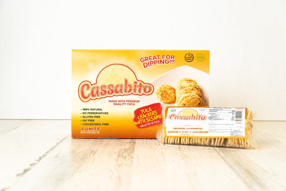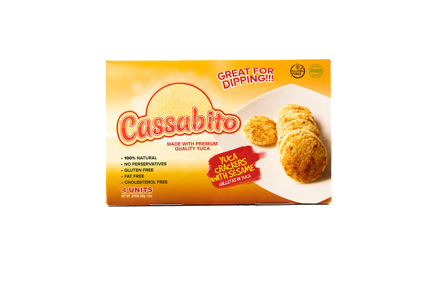 Te presentamos el Cassabito de Sesame 4-pack. El Cassabito es una galleta elaborada a base de harina de yuca, un tubérculo muy utilizado en la cocina venezolana. Puede disfrutarse como un snack por sí solo en cualquier momento del día. Es ideal para acompañar una taza de café o té. También puede ser utilizado como base para otras preparaciones, como añadirle queso, jamón u otros ingredientes para hacer un aperitivo. Su versatilidad permite que sea disfrutado de diversas formas, ya sea como un bocadillo rápido o como parte de una combinación de sabores más elaborada.