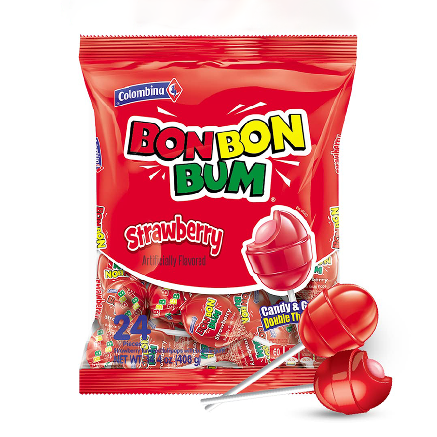 El Bon Bon Bum es una Chupeta rellena de chicle. Es una golosina popular en Venezuela y se caracteriza por su sabor dulce y surtidas opciones de sabores, como fresa, cereza, limón, naranja, entre otros. Su distintiva combinación de chicle en el centro y capa exterior de caramelo lo convierte en un dulce apreciado por niños y adultos por igual.