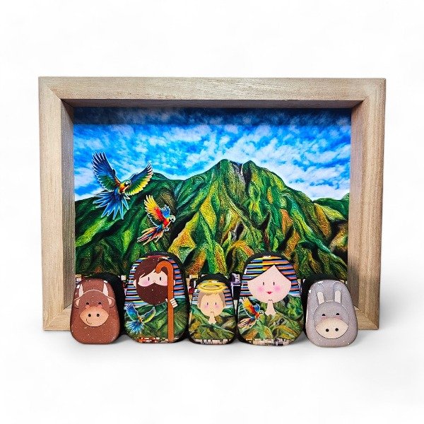 Ingrese al corazón de la cultura y tradición venezolana con nuestro belén exquisitamente elaborado. Esta pieza única encarna los momentos más preciados de la temporada, bellamente resumidos para usted y sus seres queridos.